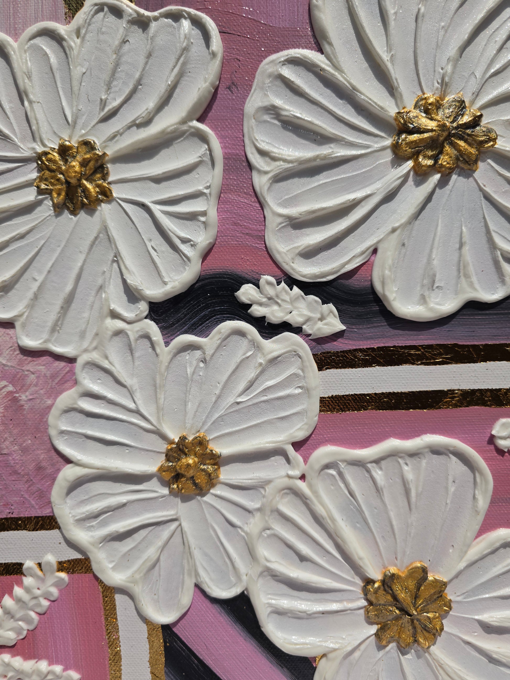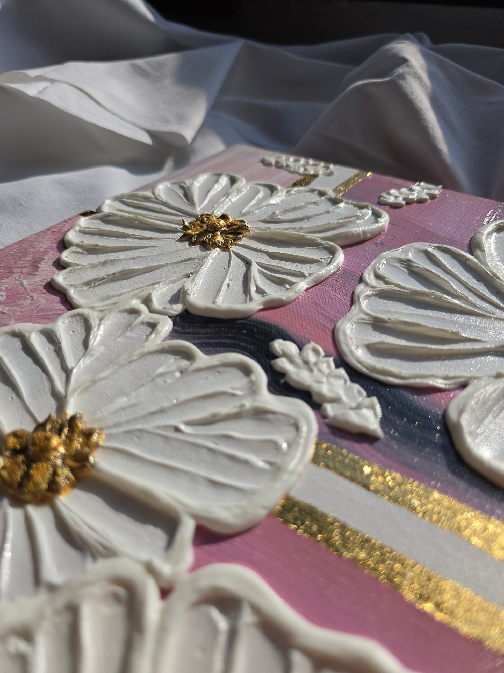 3D Flower Acrylic Painting: Pink & Gold Wall Art
