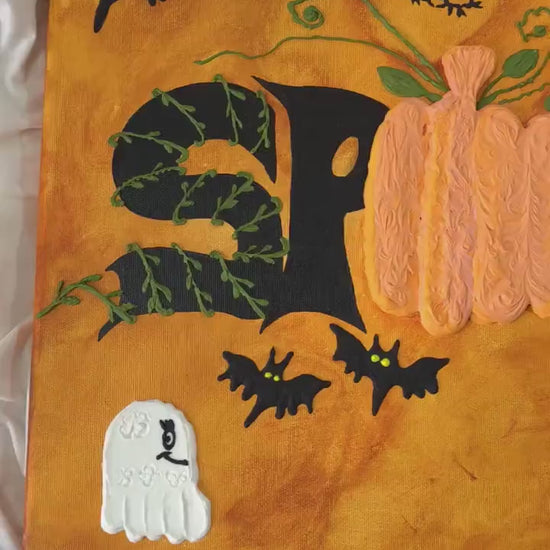 3D Halloween Painting: Spooky Pumpkin, Ghost & Bat Acrylic Art (40x50cm)