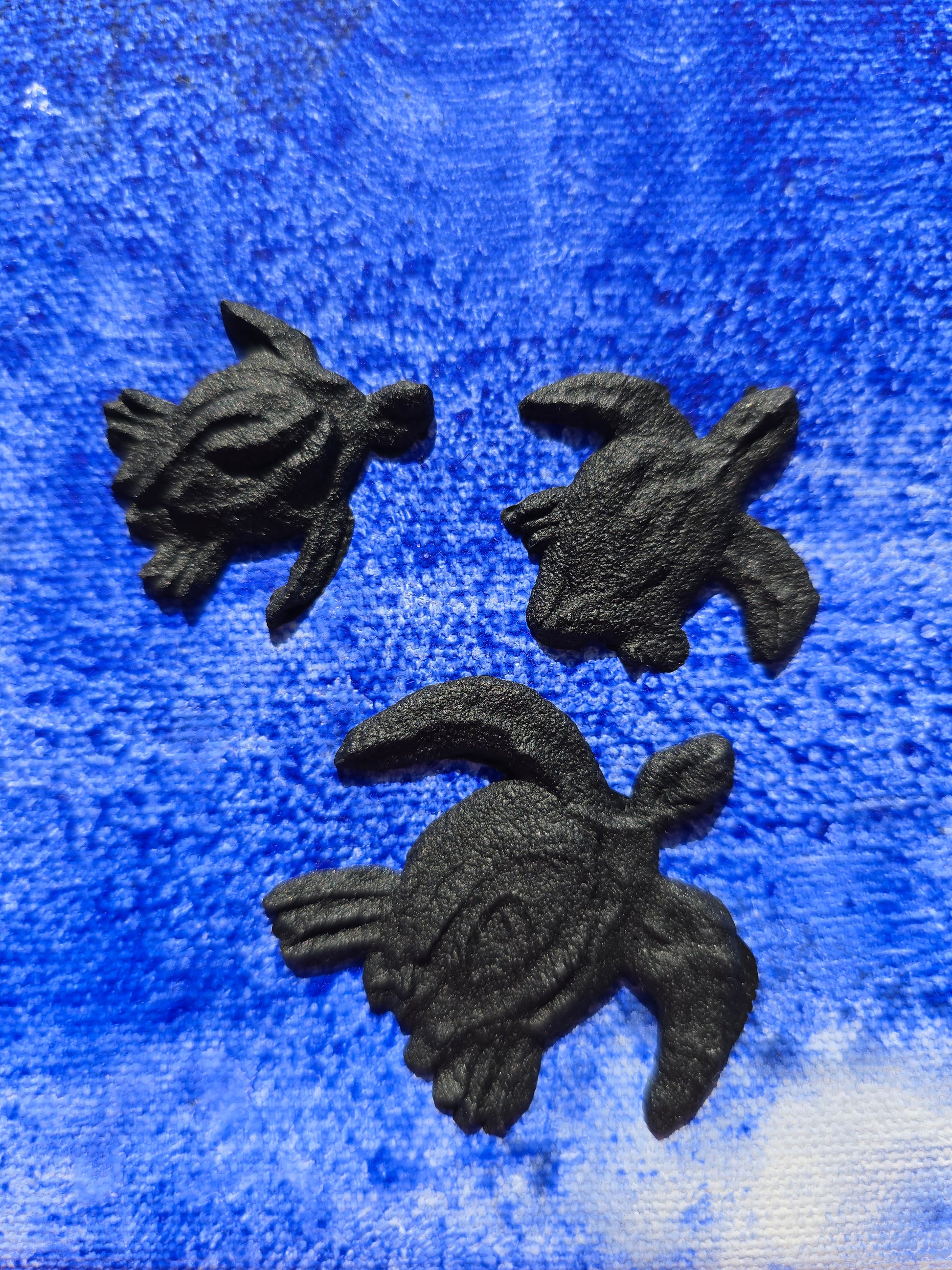 An original hand-painted artwork on a 30 x 30 cm canvas, featuring three turtoises made of a structure paste.
