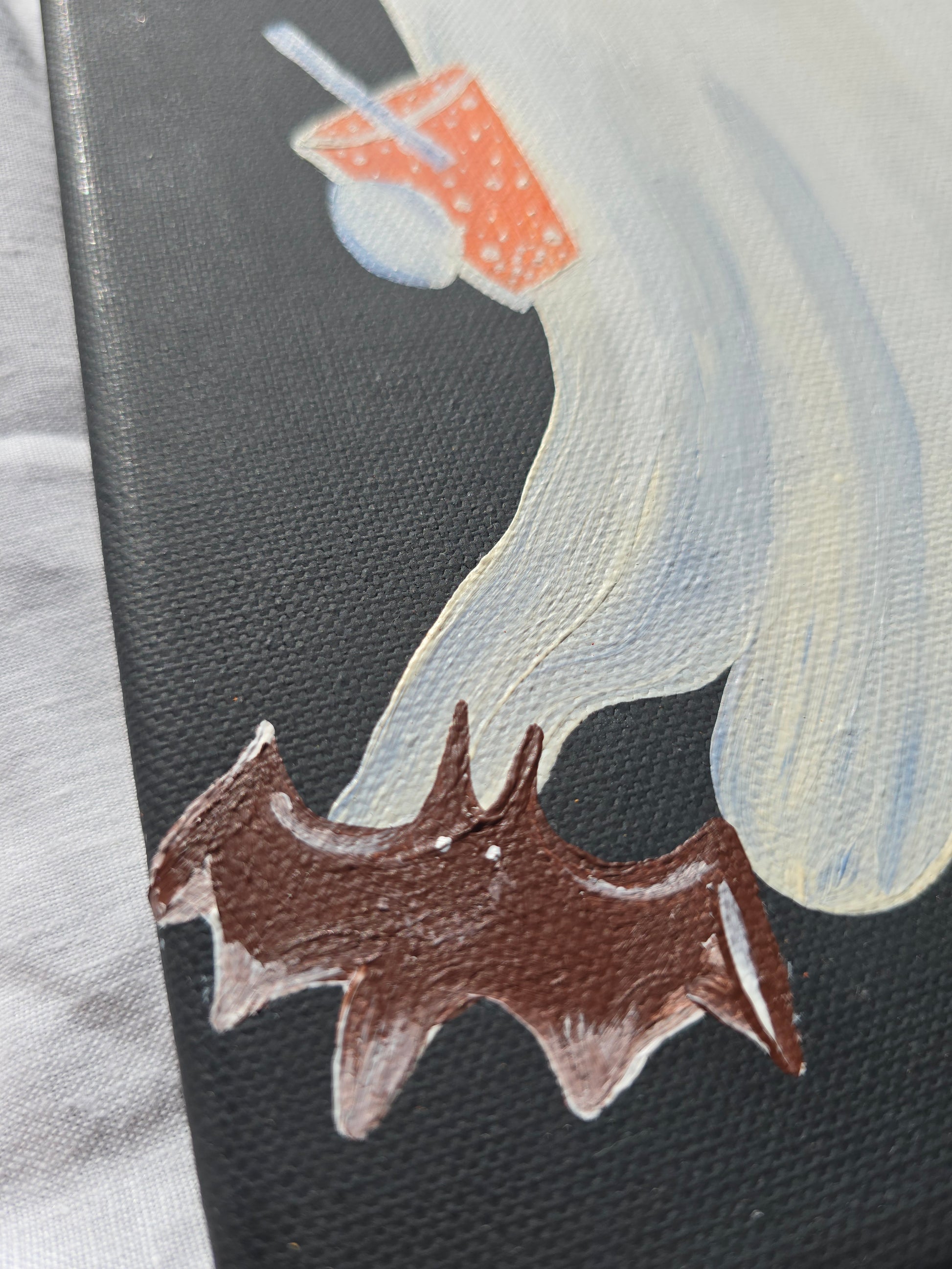 The black background helps all the details pop, making it a great seasonal piece for spooky season or for ghost lovers all year round. It’s hand-painted and totally one-of-a-kind.