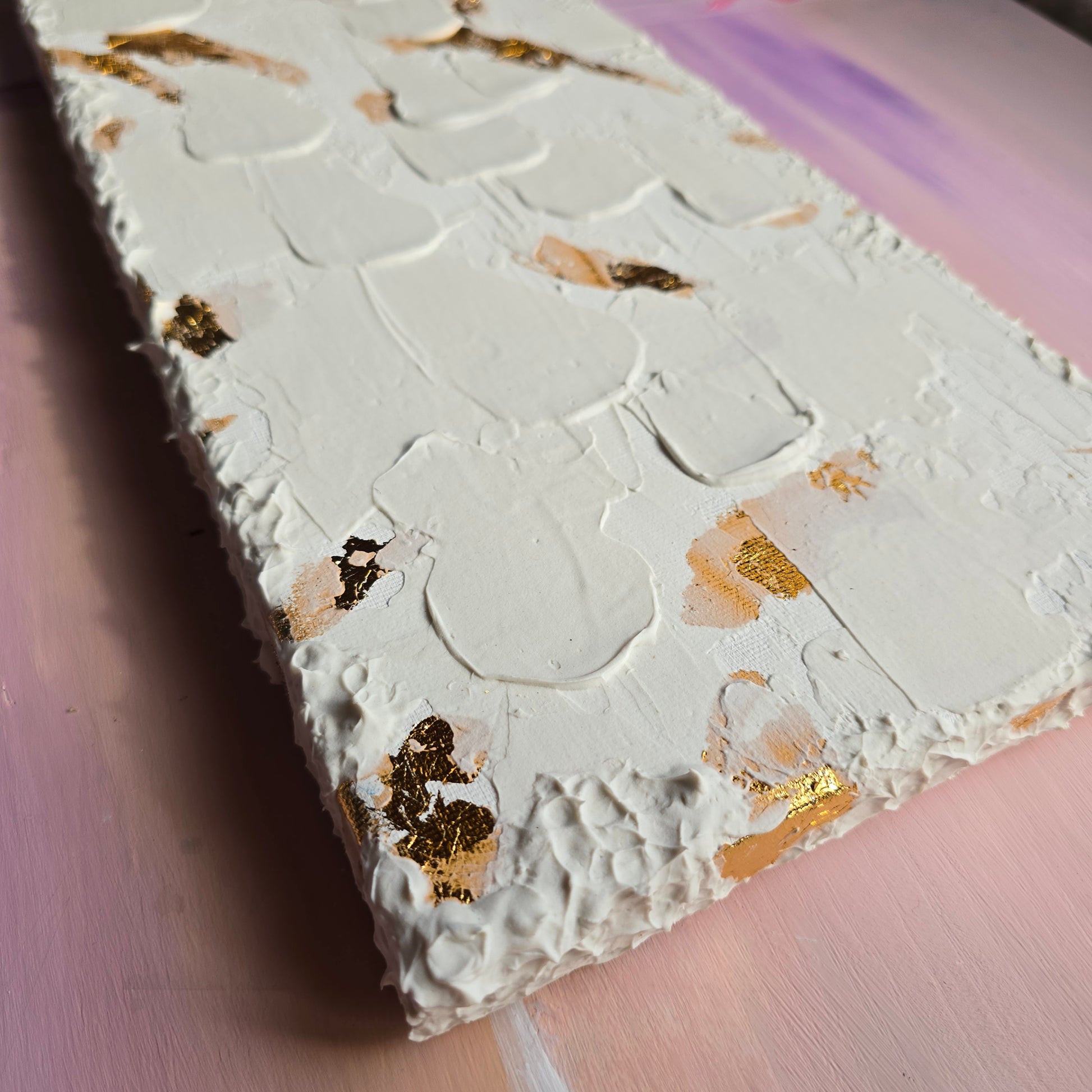 Original minimalistic piece, with structured texture and imitations of gold leafs.